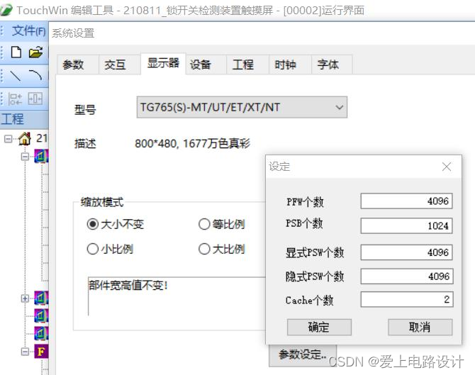 PSW、PFW、PSB 内部对象地址范围 0~255 作为系统特殊功能使用;触摸屏速度慢,可将 Cache 个数修改为 2,如下图。