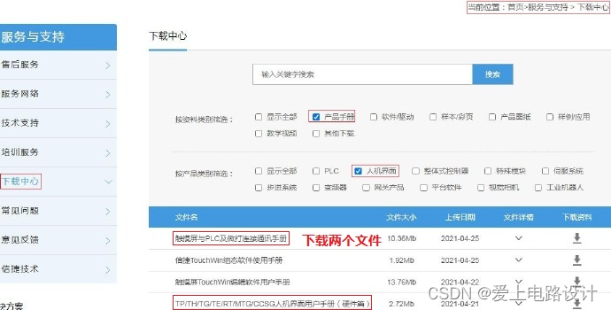 1)下载“触摸屏与 PLC 连接通讯手册”;