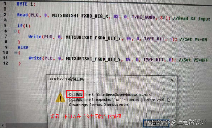 2)C函数功能块F7编译报错