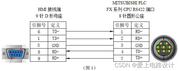 FX0/FX1/FX1S/FX0N/FX1N/FX2N 系列 PLC 使用 RS422 时,电缆制作图如下所示。
