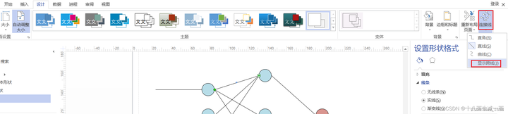 直线交叉时产生的交叉桥,影响整体美观,去掉交叉桥的方法:点击 CTRL 选择所有直线→选择上端工具栏的“设计”→去掉最右端“连接线”的“显示跨线”勾。