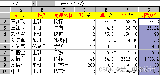 这时关闭编辑器,只要我们在相应的列中输入rrr(F2,B2),那么打完折后的金额就算出来了(如图6.2)。