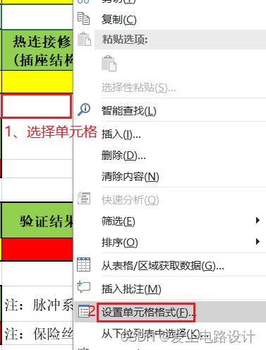 1)进入单元格设置