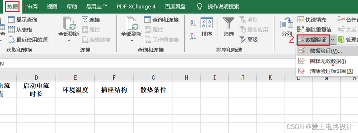 工具栏 → 数据 → 点击“数据验证”