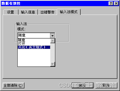 2)选中要输入汉字的列,在“有效数据”对话框中,单击“IME模式”选项卡,在“模式”框中选择“打开”命令,单击“确定”按钮。这样,当光标在前一列时,可以输入英文,在下一列时,直接可以输入中文,从而实现了中英文输入方式之间的自动切换。