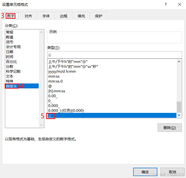 自定义格式的通用模型相当于下式:[>;0]正数格式;[<;0]负数格式;零格式;文本格式。