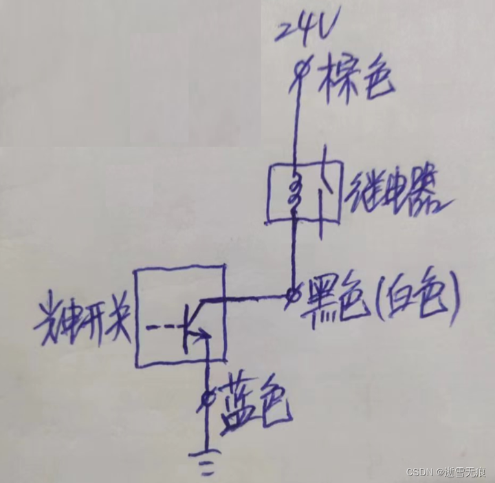 对于 NPN-NO型,在没有信号触发时,输出线是悬空的,就是 0V线和 OUT线断开。有信号触发时,发出与0V相同的电压,也就是 OUT线和 0V线连接,输出输出低电平 0V。