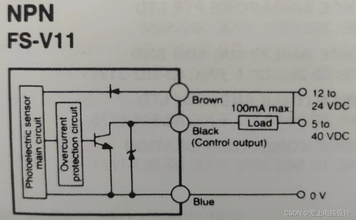NPN 是指当有信号触发时,信号输出线OUT 和 0V线连接,相当于输出低电平0V。