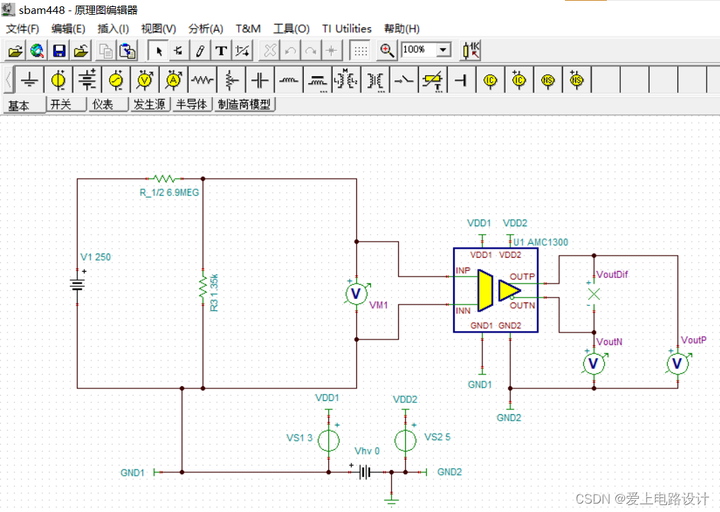 它是德州仪器 (TI) 专有的DesignSoft产品。该免费版本具有完整的功能,但不支持完整版TINA所提供的某些其他功能。