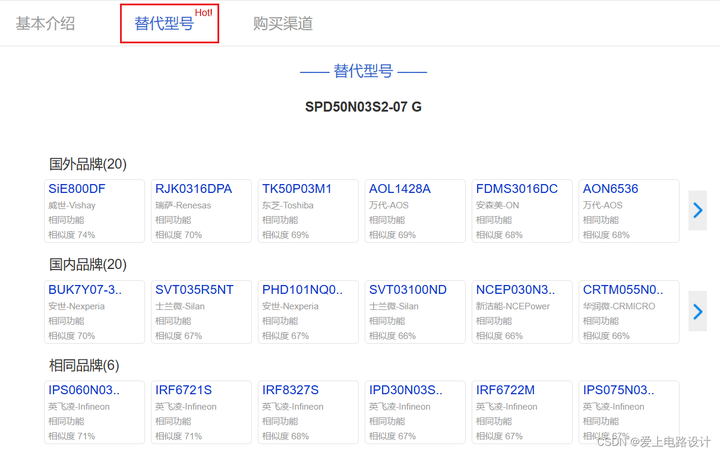 汽车级元件国外品牌很容易断货,可替代型号一目了然。