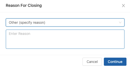 <Modal title="Reason For Closing" visible={reasonModalVisible} okText="Continue" onCancel={() => setReasonModalVisible(false)} onOk={handleReason}>