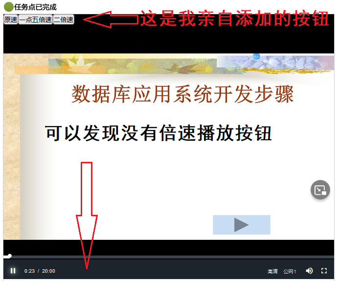 - 我在左上角添加了一组按钮,通过点击就可以设置为我想要的播放速度。不过能够这些按钮成功,其灵魂还是在于上面的一堆操作