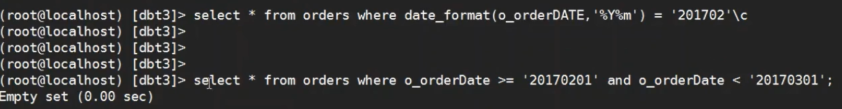 - 注意:等号左边,不建议用date_format函数。因为用不到索引了。效率低下。