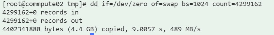 cd /tmp dd if=/dev/zero of=swap bs=1024 count=4299162 (4.1G*1024=8388604)