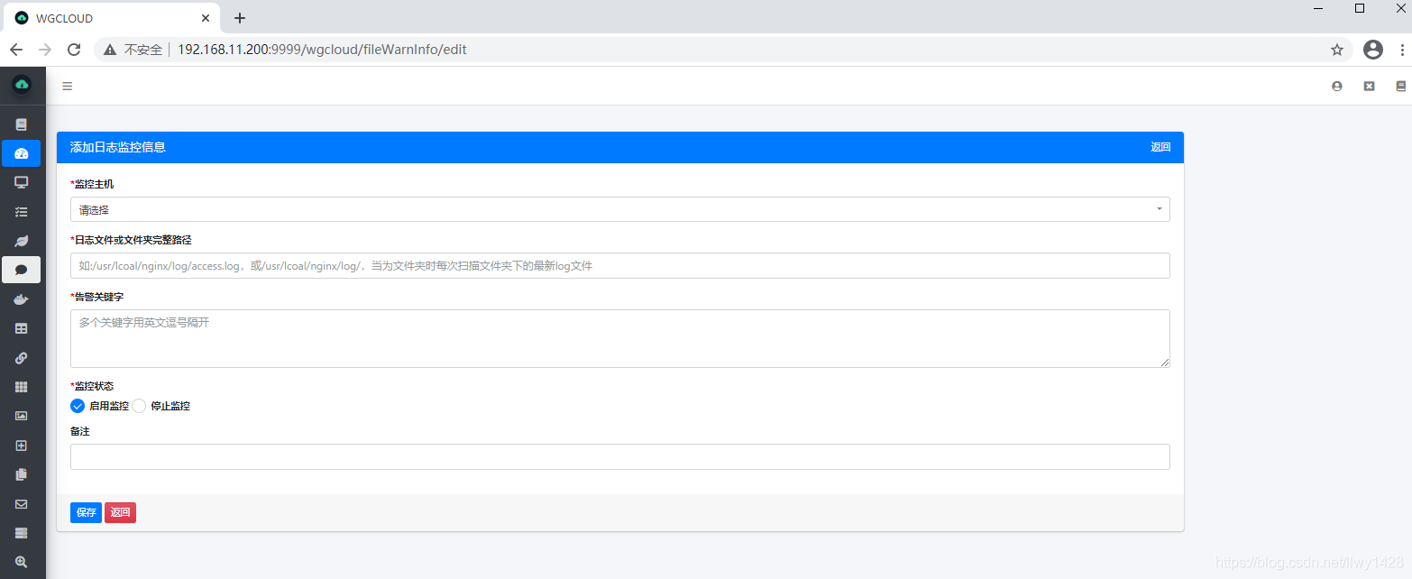 http://192.168.11.200:9999/wgcloud (192.168.11.200 是我虚拟机内网 IP)
