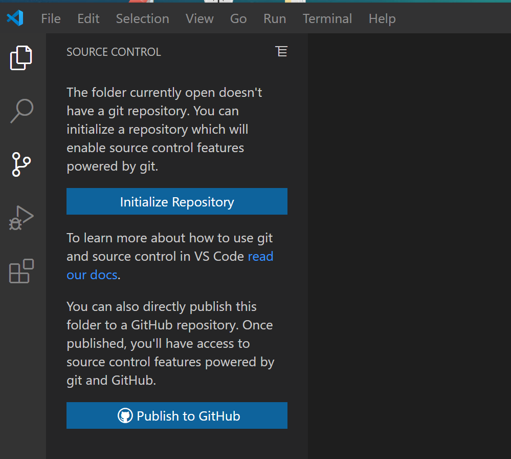打开源代码管理器,点击Initialize Repository,初始化一个Git本地版本库