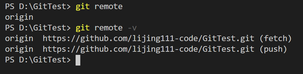 使用git remote -v 可以查看更详细的远程存储库信息,包括fetch(抓取)的远程存储库URL和push(推送)的远程存储库URL。