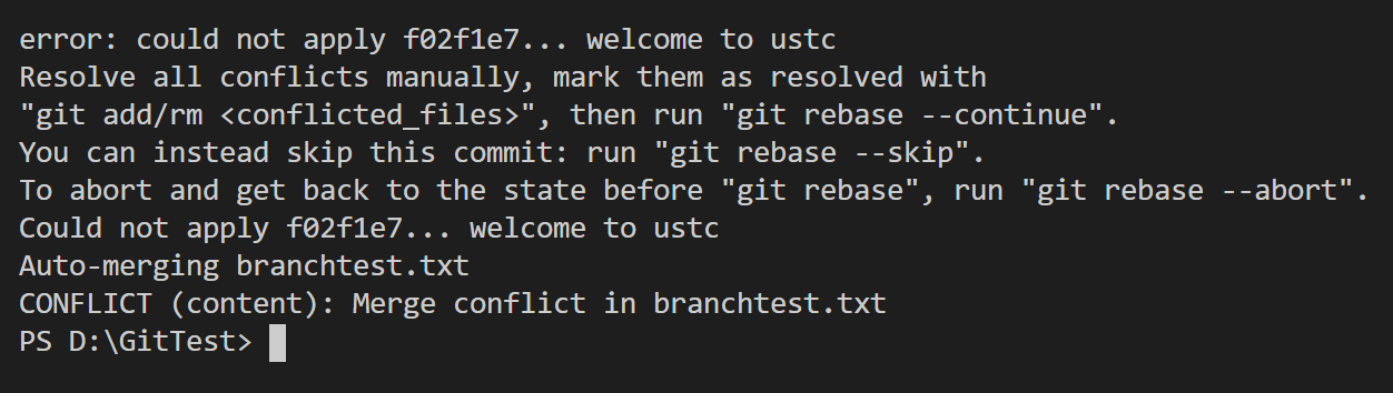 解决冲突后需要将修改后的文件存入暂存区(git add),最后执行如下命令完成git rebase: