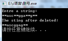 /* 假定输入的字符串中只包含字母和*号。 编写函数,实现: 除了字符串前导和尾部的*号之外,将串中其他*号全部删除。 在编写函数时,不得使用C语言提供的字符串函数。 例如,若字符串中的内容为****A*BC*DEF*G******* 删除后,字符串中的内容则应当是****ABCDEFG****** */ #include <stdio.h> #include <stdlib.h> #include <string.h> void fun(char *a) { /**ERROR******/ int i=0; char *t = a, *f = a; char *q = a; while(*t) t++; t--; while(*t == '*') t--; while(*f == '*') f++; /***ERROR***/ while (q<f) { a[i] = *q; q++; i++; } while (q<t) { /***ERROR**/ if(*q != '*') { a[i] = *q; i++; } q++; } while (*q) { a[i] = *q; i++; q++; } /**ERROR**/ a[i]=0; } int main () { char s[81]; printf("Entre a string:\n"); gets(s); /**ERROR**/ fun(s); printf("The sting after deleted:\n"); puts(s); system("pause"); return 0; }