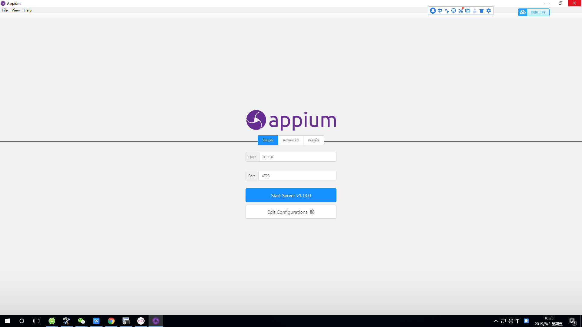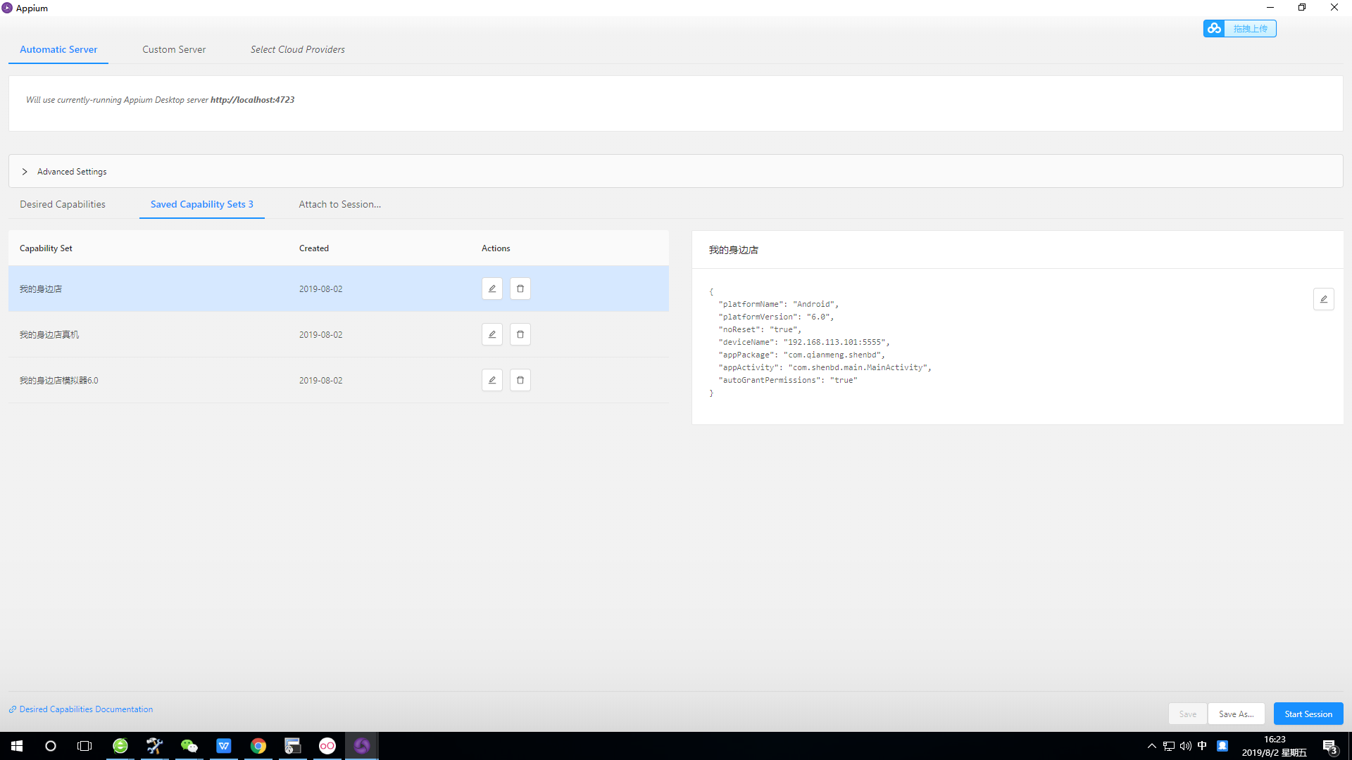 环境搭建查看另一篇博客,支持2019年最新的运行环境,使用的是appium桌面版