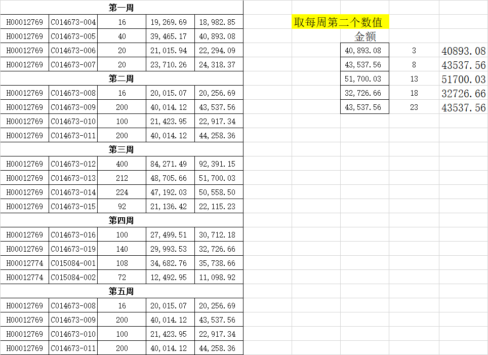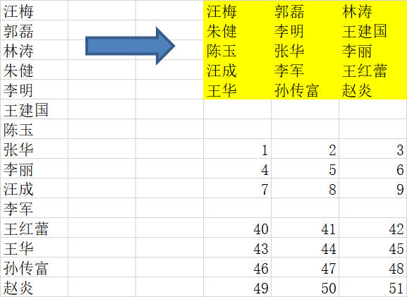 =INDEX($A$1:$A$15,ROW()*3+COLUMN()-10)