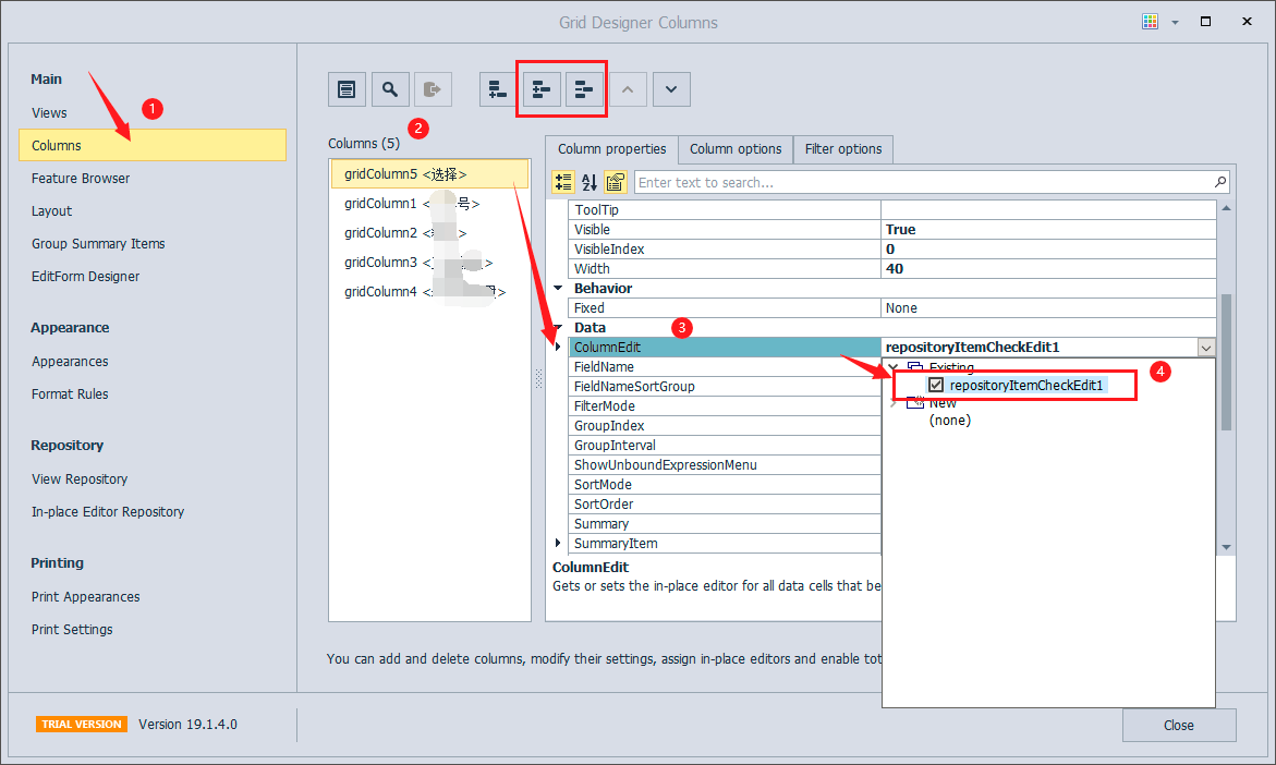 b、上图columnedit选择的数据设置:
