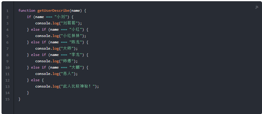问题代码中的判断都是简单的相等判断,那么我们就可以将这些判断条件作为一个属性写到对象describeForNameMap 中去,这些属性对应的值就是条件成立后的处理函数。