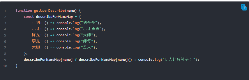 之后我们就只需通过getUserDescribe函数接收到的参数去获取describeForNameMap对象中对应的值,如果该值存在就运行该值(因为值是一个函数)。