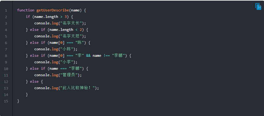 那如果我们的 if 分支中的判断条件不只是简单的相等判断,还具有一些需要计算的表达式时,我们该怎么办呢?(如下所示)
