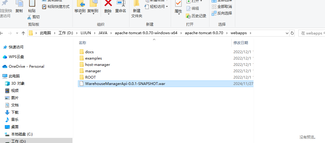 四、把war包放到tomcat下webapps里面,启动tomcat服务
