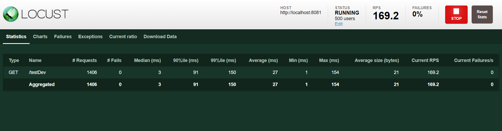 Download Data:测试数据下载模块, 提供三种类型的CSV格式的下载,分别是:Statistics、responsetime、 exceptions;