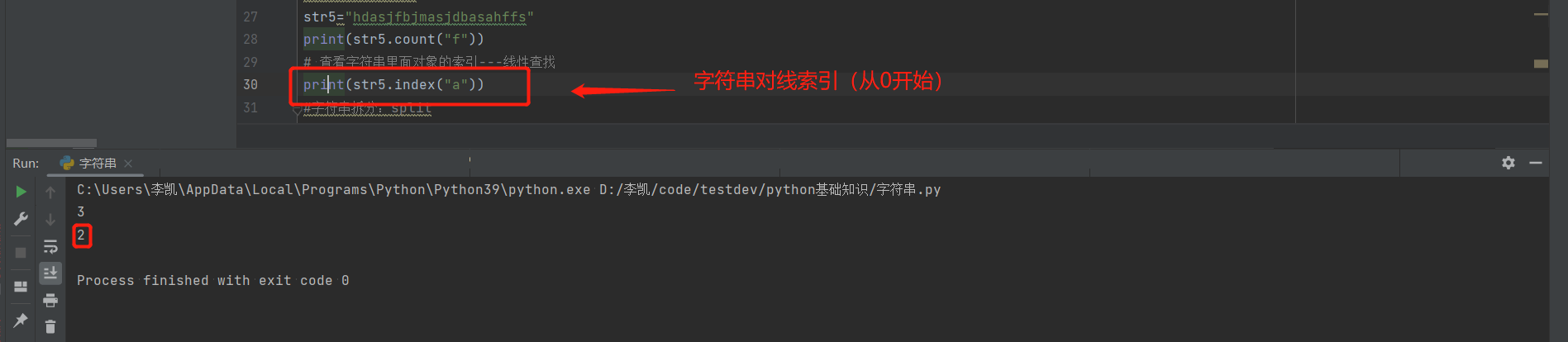 15、查看字符串里面对象的索引---线性查找(从0开始)