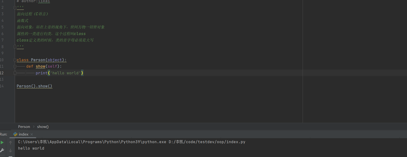 object是所有类的祖先,在类中定义的函数叫做方法,self是类本身自己,该方法为实例方法。