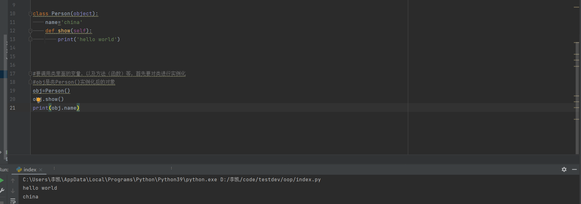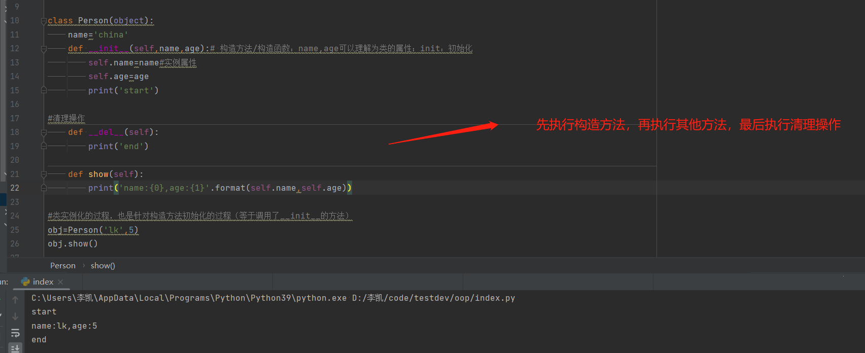 obj是类Person()实例化后的对象,类实例化的过程也是类初始化的过程
