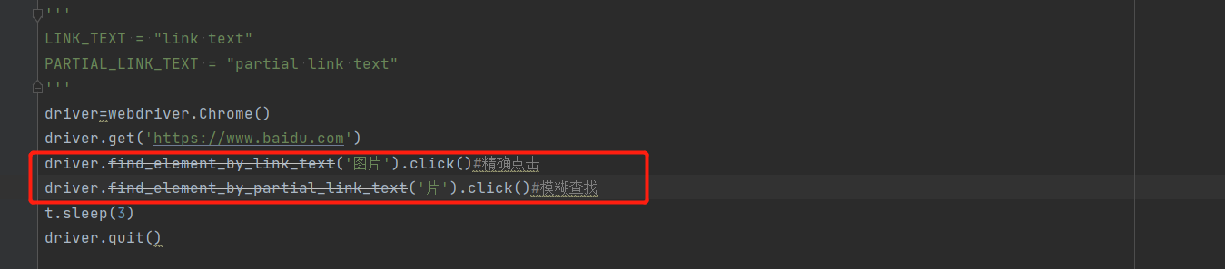 PARTIAL_LINK_TEXT = "partial link text":模糊