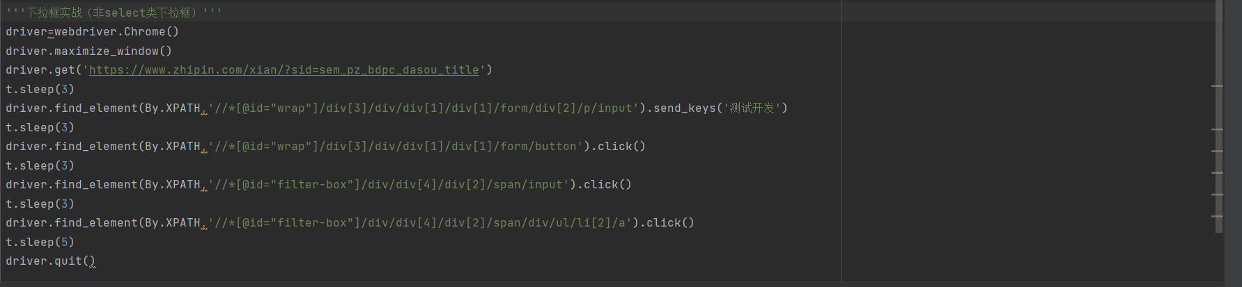 下拉框实战(非select类)boss直聘:搜索‘测试开发’,并且在学历栏选择初中及以下