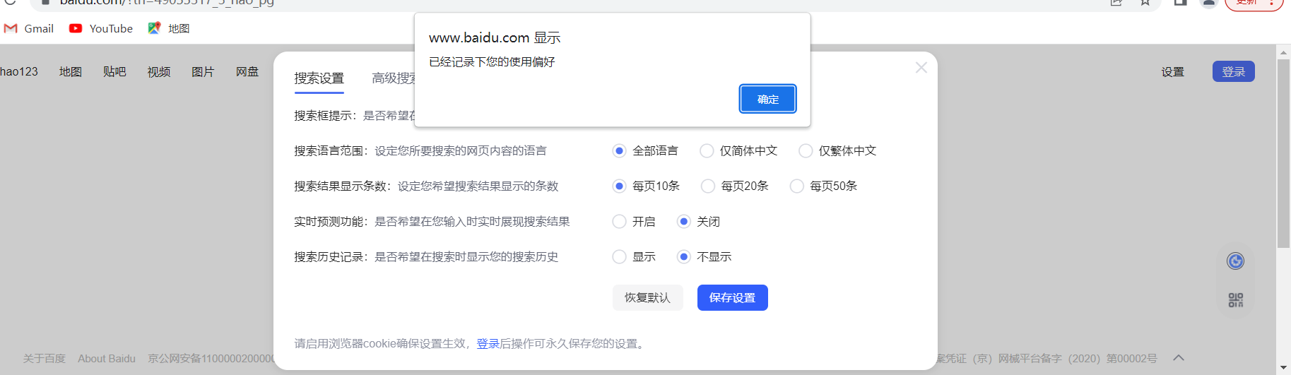 设置实战:鼠标悬浮到谁知,点击搜索设置中将实时预测功能关闭,并保存设置