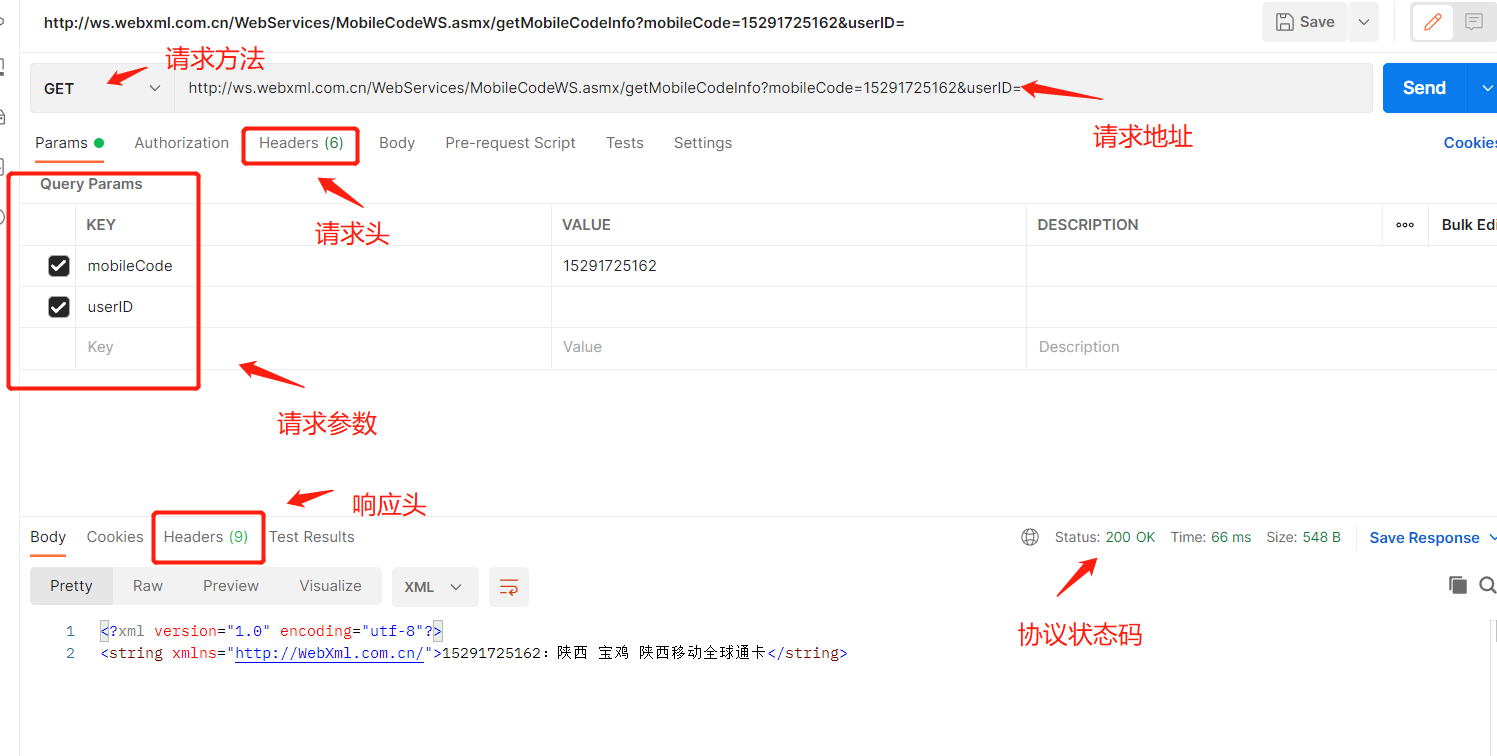 URL:http://+域名+资源的详细地址 http://ws.webxml.com.cn/WebServices/MobileCodeWS.asmx/getMobileCodeInfo