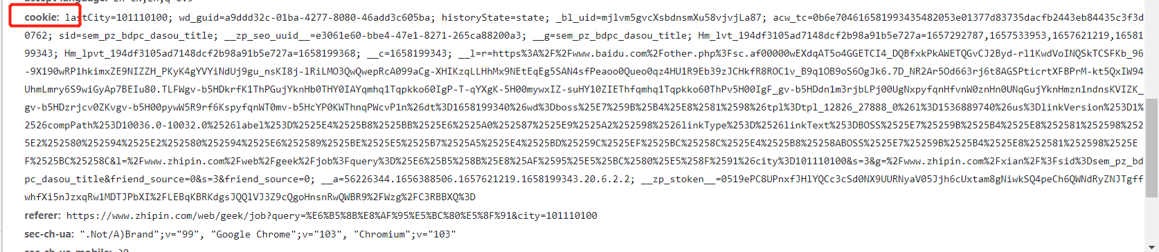 BOSS直聘接口实战(互联网产品:需要规定的cookie、referer、user-agent)