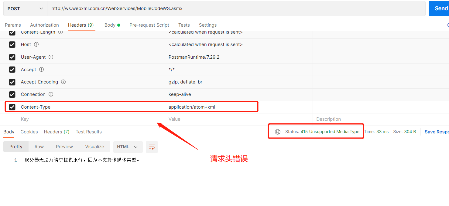 415 请求头错误