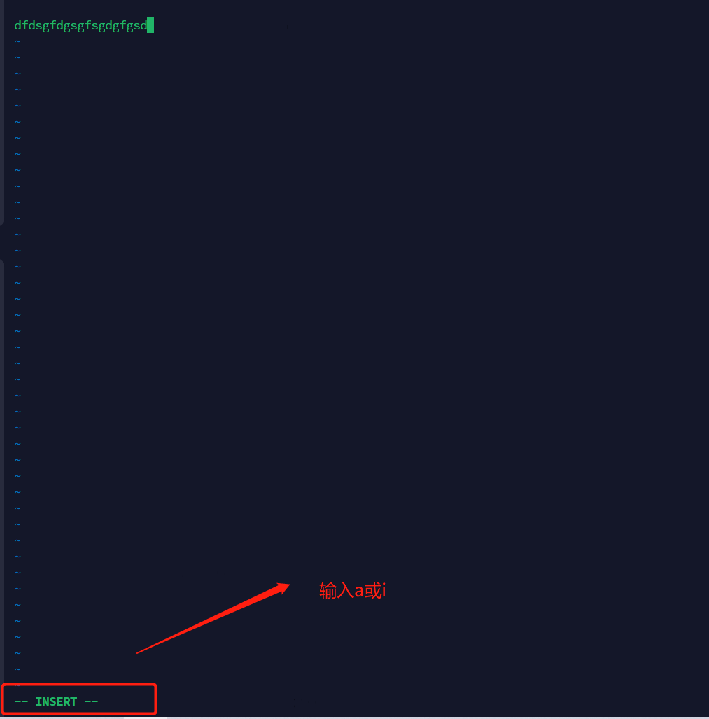 2、输入i or a ,就会显示insert /插入---》可以写内容了