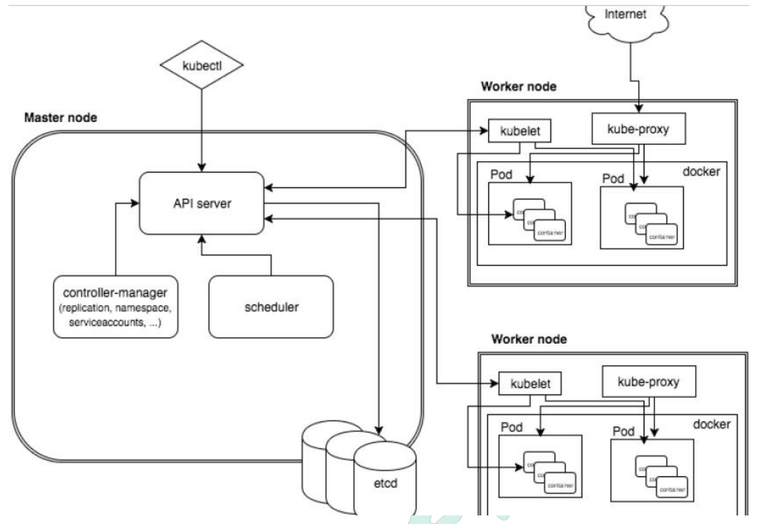 - apiserver: 集群的统一入口,以restful 方式提供,交给etcd存储