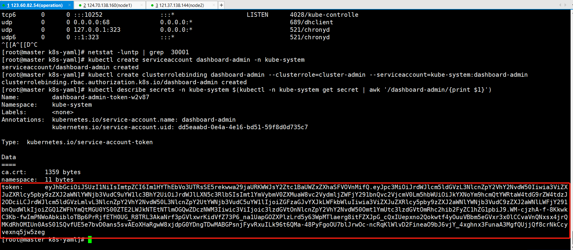 kubectl create clusterrolebinding dashboard-admin --clusterrole=cluster-admin --serviceaccount=kube-system:dashboard-admin