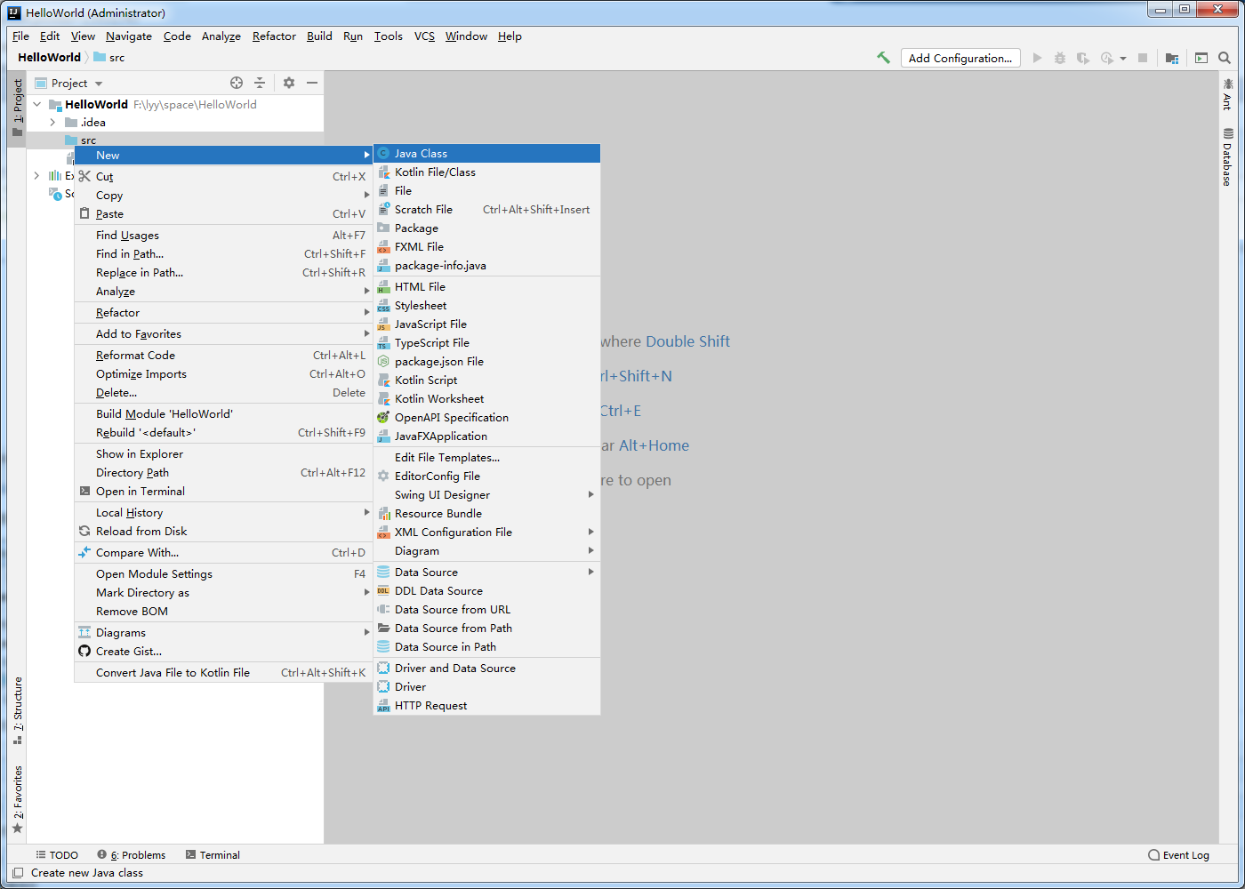 7.打开刚刚创建的项目,右击src-->New-->Java Class