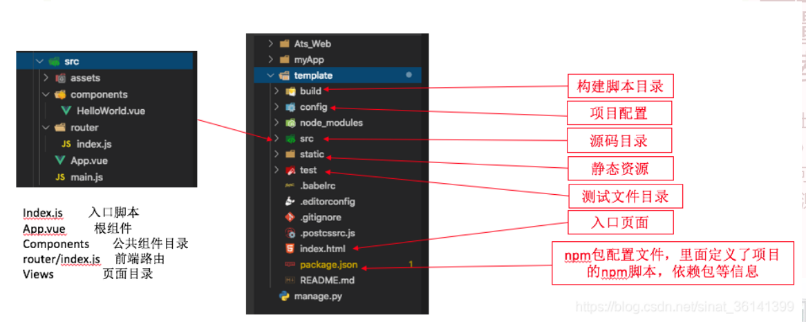 5、进入 template,运行命令来安装vue所须要的node依赖
