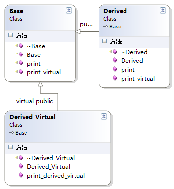 上面2个类,基类Base、派生类Derived中都包含下面2个方法: