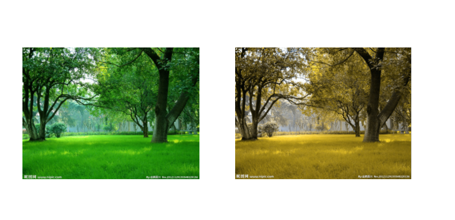 前一段时间实现了Reinhard颜色迁移算法,感觉挺有意思的,然后在代码上随意做了一些更改,有了一些发现,把Lab通道的a通道值改为127左右,可以将绿色改为黄色,而对其他颜色的改动非常小,因此可以将春天的场景变换到秋天去,这里是核心代码: