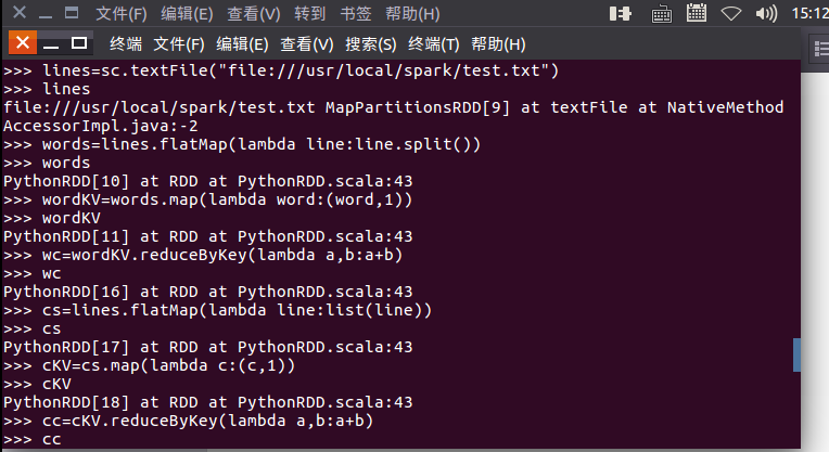 lines = sc.textFile("file:///home/sjx/下载/EN/test.txt")