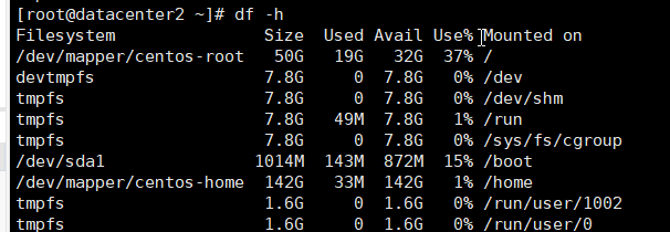 可以看到 /home 有很多剩余空间, 而节点较少。