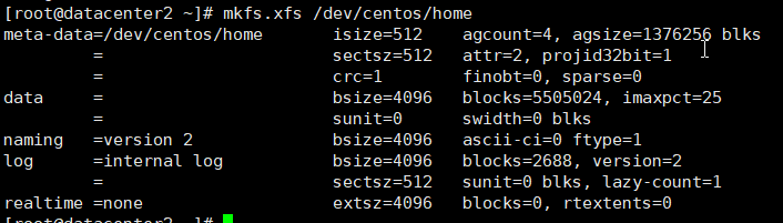 10. 创建文件系统: mkfs.xfs /dev/centos/home